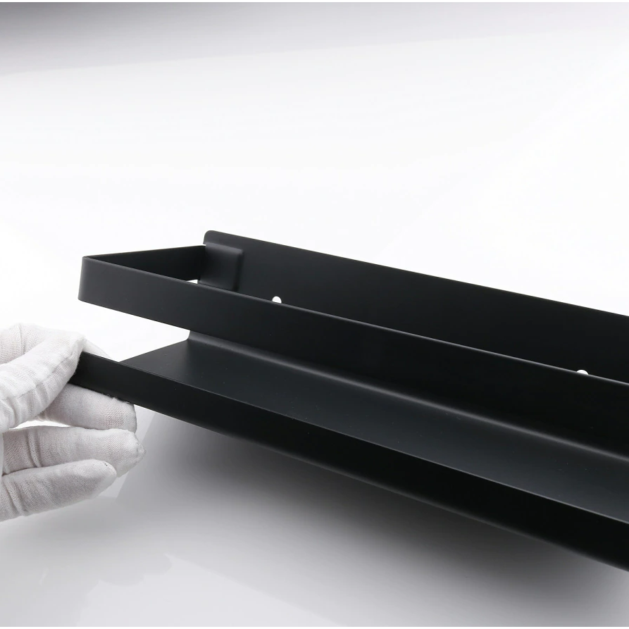 Design planchet 30x10cm, hoogte 6cm. Deze houder is gemaakt van hoogwaardig RVS en mat zwart gecoat. Inclusief bevestigingsset met afdekdopjes in mat zwart.