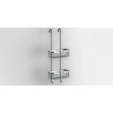 Doucherek Jabon 2 laags chroom, breedte 27cm, diepte 19cm, hoogte 69,5cm. Door de uitsparingen in de onderzijde blijft er geen water in staan.