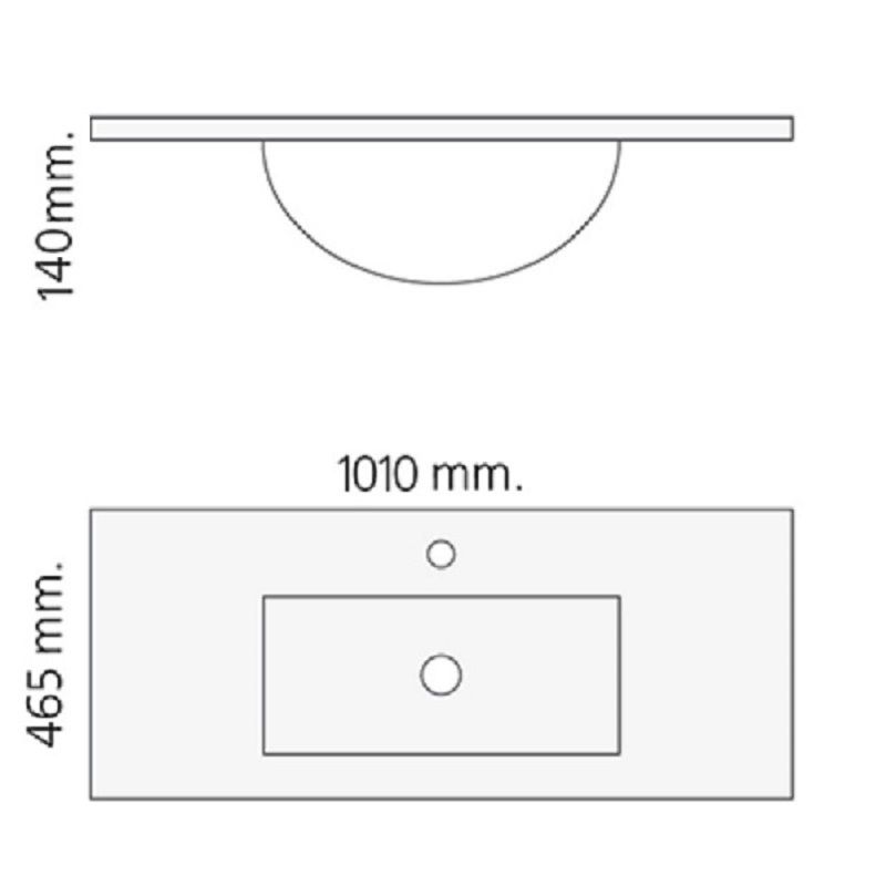 Solid Surface wastafel Florence 101x46cm mat wit, hoogte 14cm, dikte 1cm, inclusief kraangat.